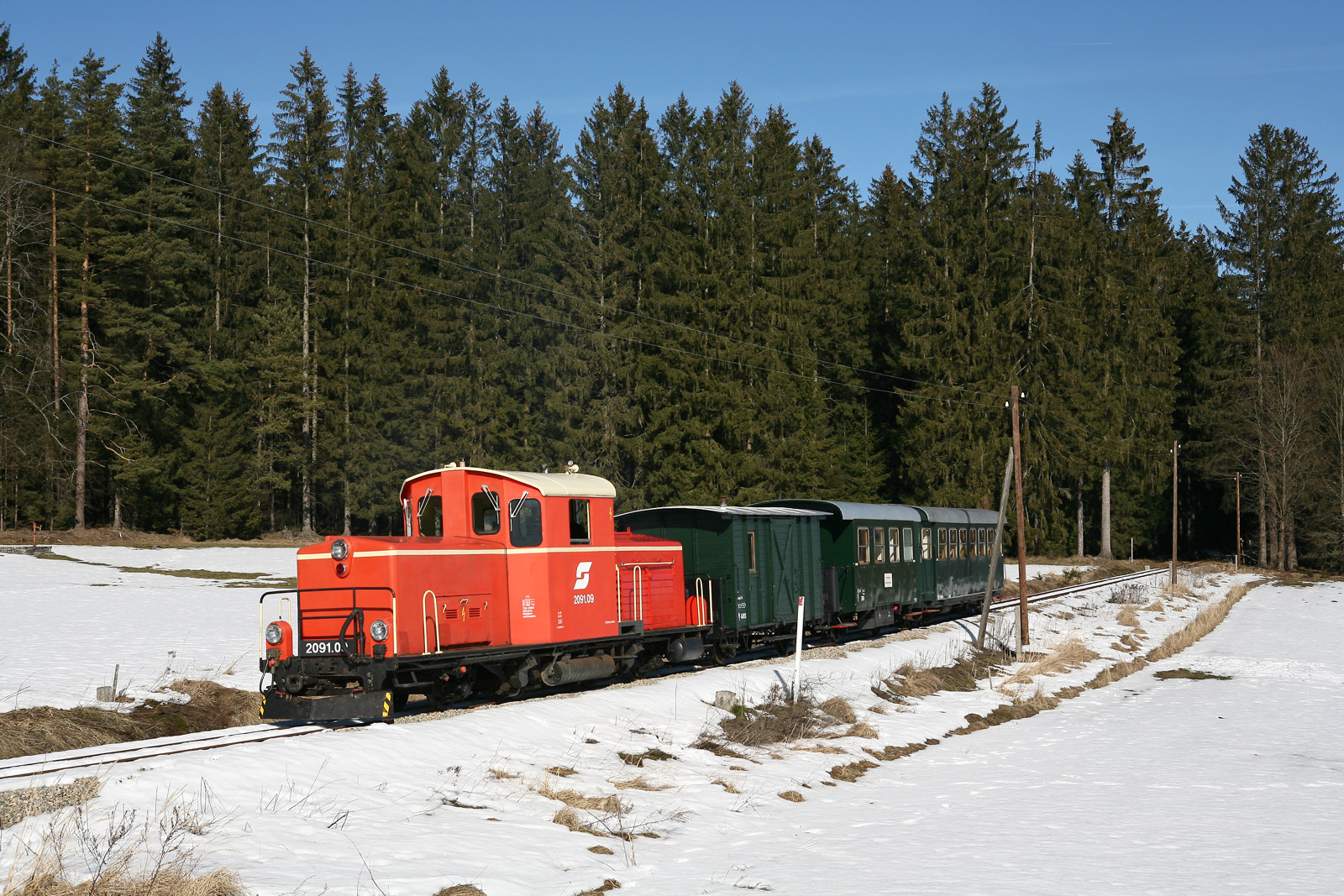 Fahrzeugeinsatz: historische Diesellok 2091, Personenwagen, Jausenwagen